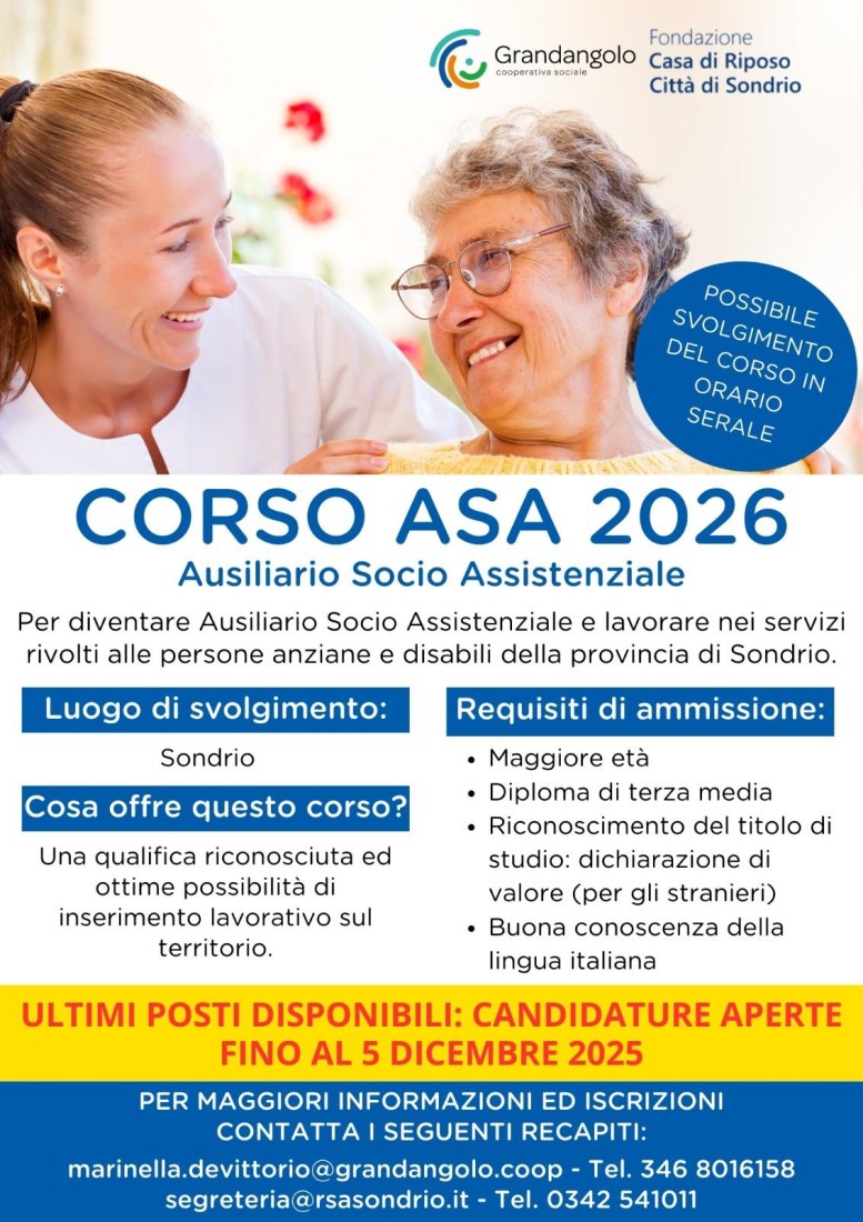 Per diventare Ausiliario Socio Assistenziale e lavorare nei servizi rivolti alle persone anziane e disabili della provincia di Sondrio.